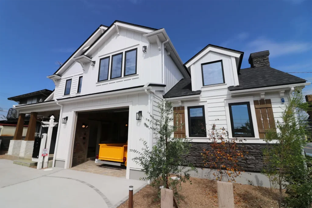 アメリカンスタイルのガレージハウスと平家の2棟を同時にご覧いただけます。