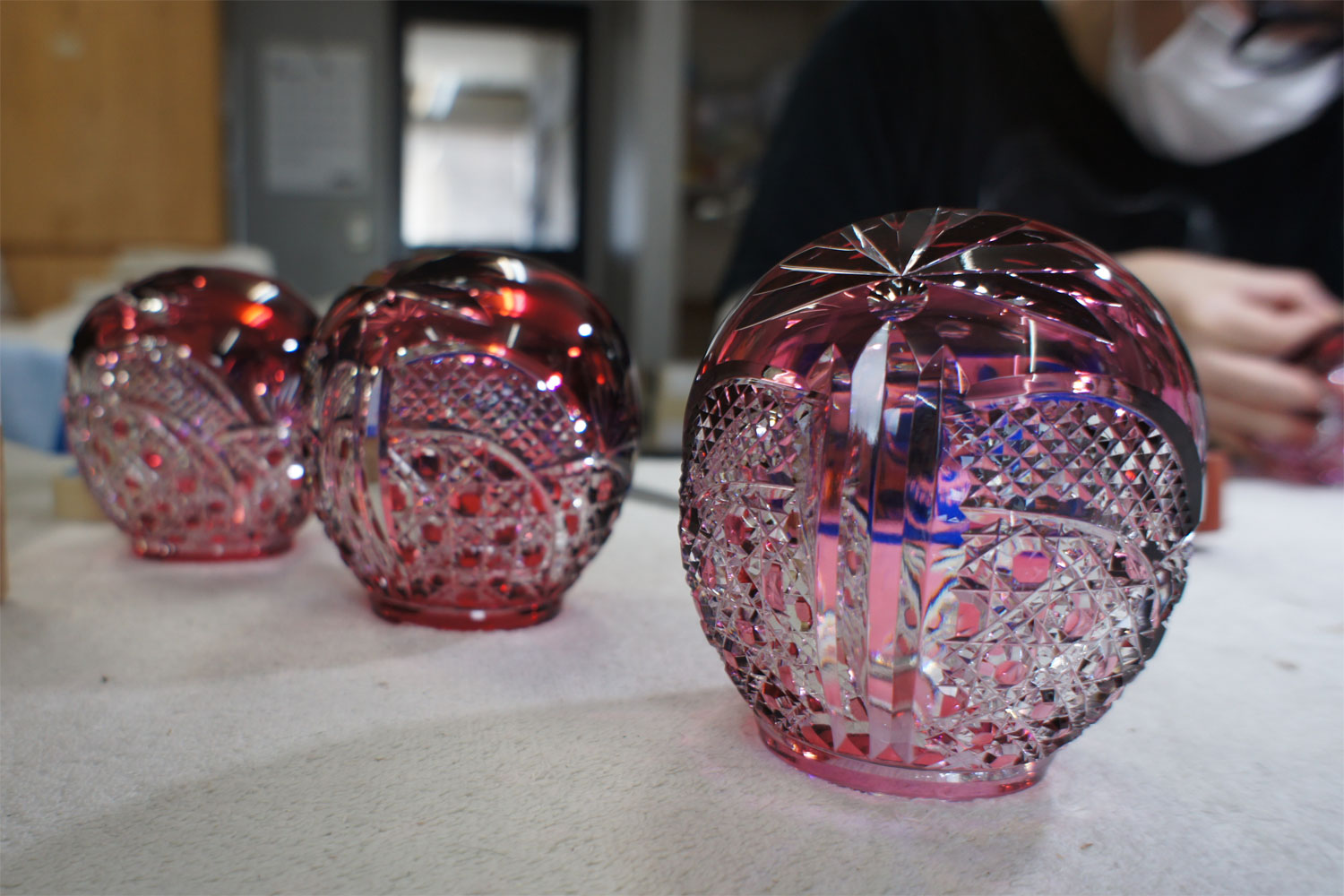 GLASS-LABの職人は他にない程の技術を持ち、砂切子でわずか0.09mmまでの細い線を描くことができる。平切子職人は全国に10人といないと言われている。