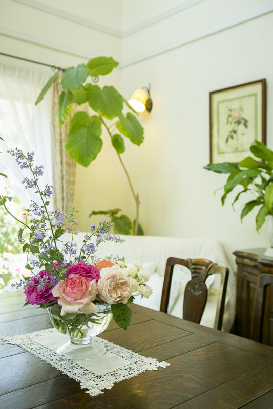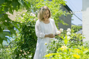 美しい姿と高貴な香りが漂うイングリッシュガーデンは、奥様が大切に育ててきたバラが見事な花を咲かせて、風に揺れる。