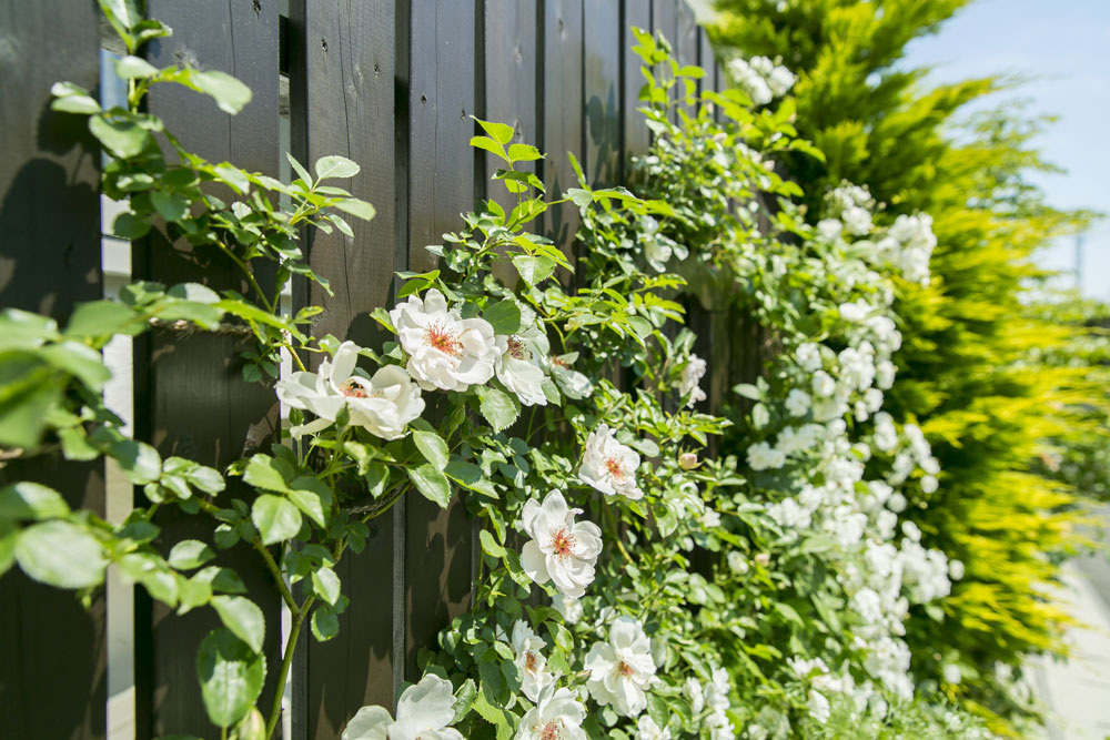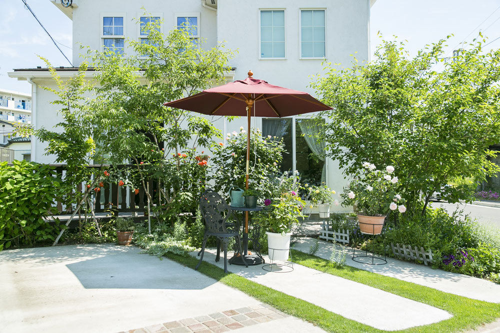 念願だったイングリッシュガーデンは想い通りの装いで、季節ごとに咲く庭の花が道行く人の目を楽しませている。