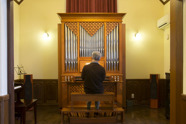 ご主人の長年の夢だったというオルガンルームには、日本には珍しい、家庭用のパイプオルガンが設置され、その佇まいがひと際目を惹く。