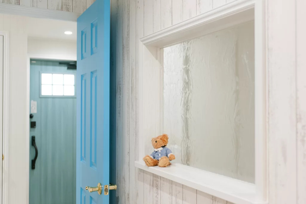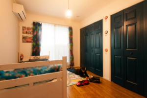 幅広タイプのフローリングや白い木目調柄の壁が室内をより広く見せてくれる。
