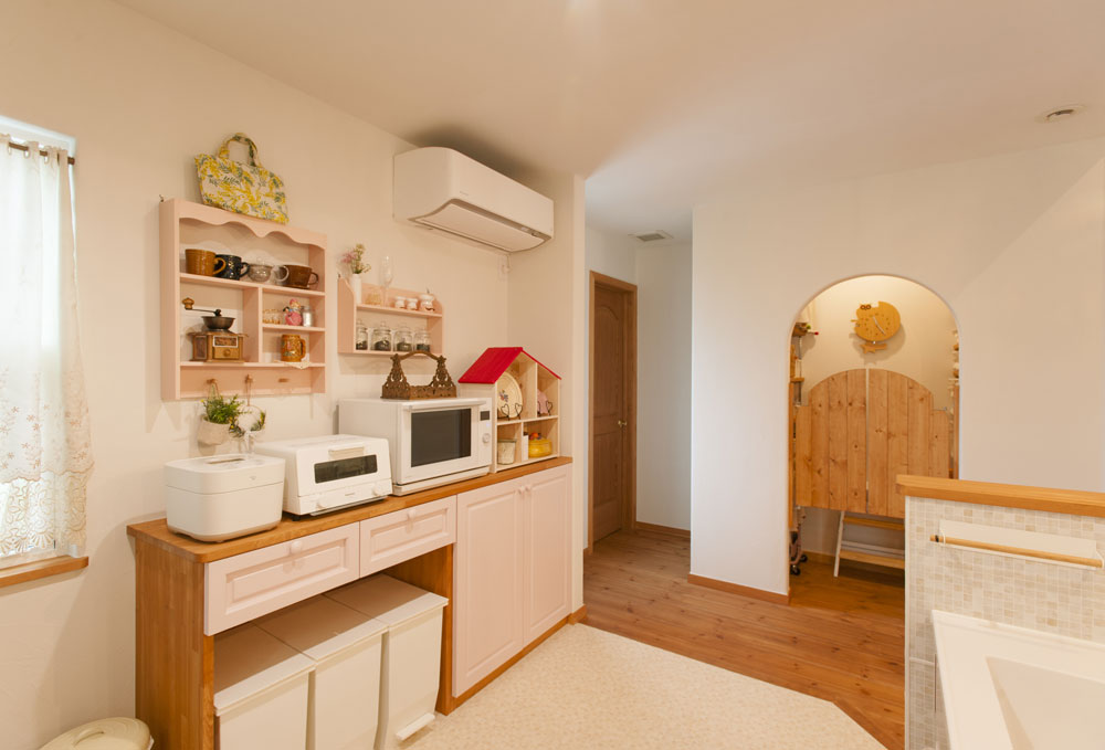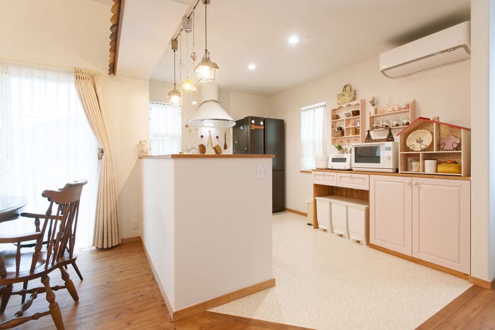 ゆとりある広さを確保し、料理のしやすいキッチン。対面式なので、リビング・ダイニングにいる家族とコミュニケーションがとりやすい。