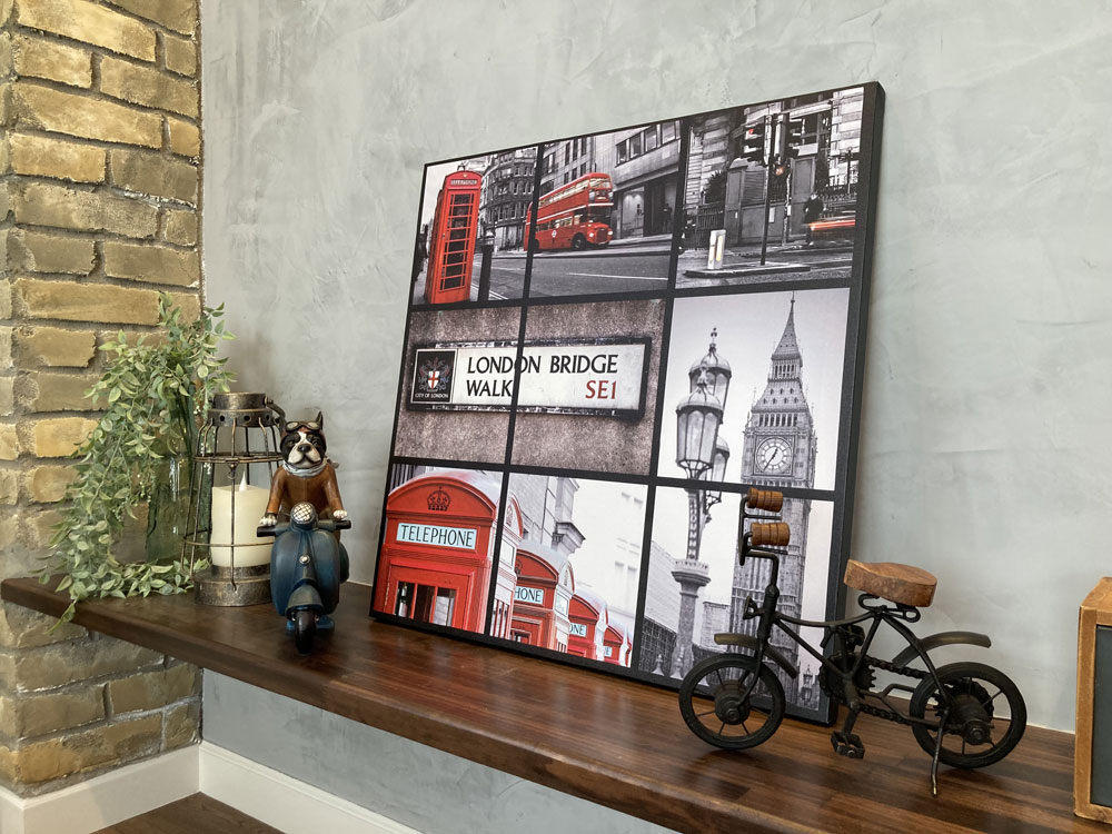 デザインコンクリート(造形モルタル)で彩られたアクセントウォールは、室内全体が威風堂々としたイメージを与え、室内のアクセントになっている。